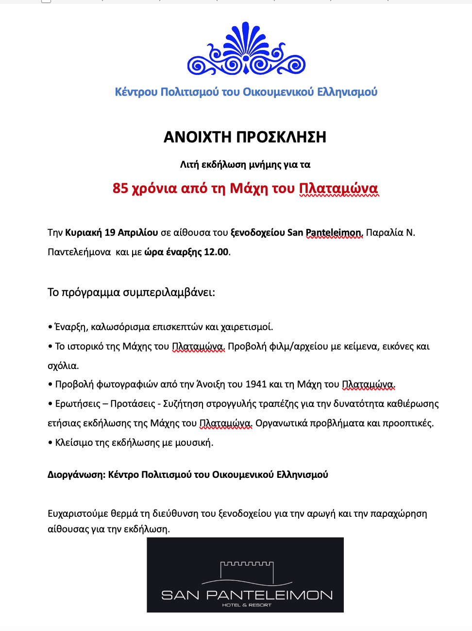 85 χρόνια από τη Μάχη του Πλαταμώνα