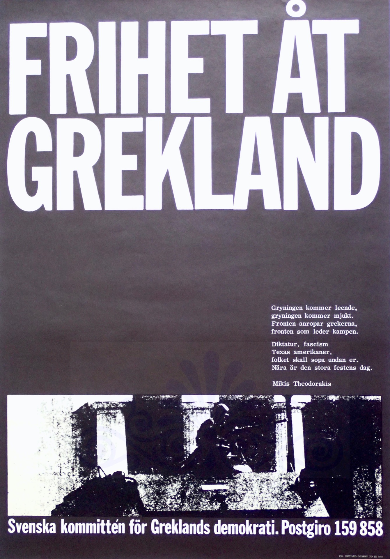 Δημοκρατικής Νεολαίας Λαμπράκη Σουηδίας, στην Ελληνική και στη Σουηδική Επιτροπή για την Δημοκρατία στην Ελλάδα όπως και στην Παγκόσμια καμπάνια για την απελευθέρωση του Μίκη Θεοδωράκη από την χούντα.