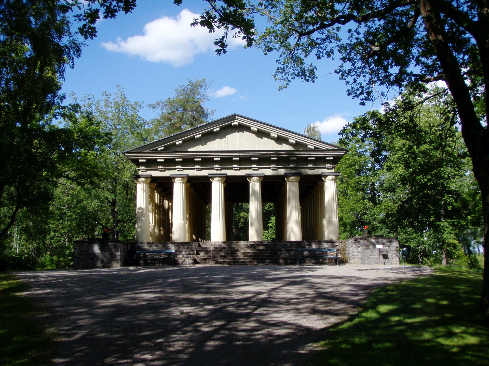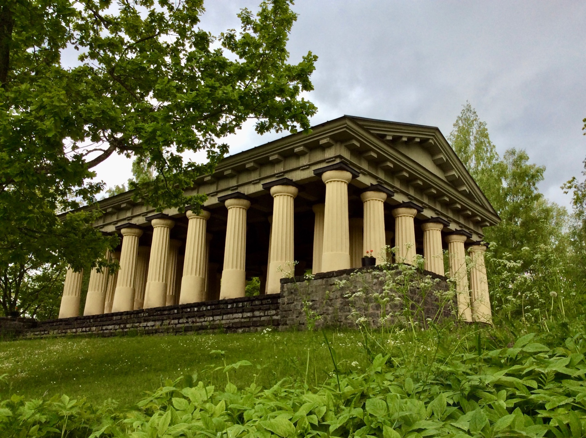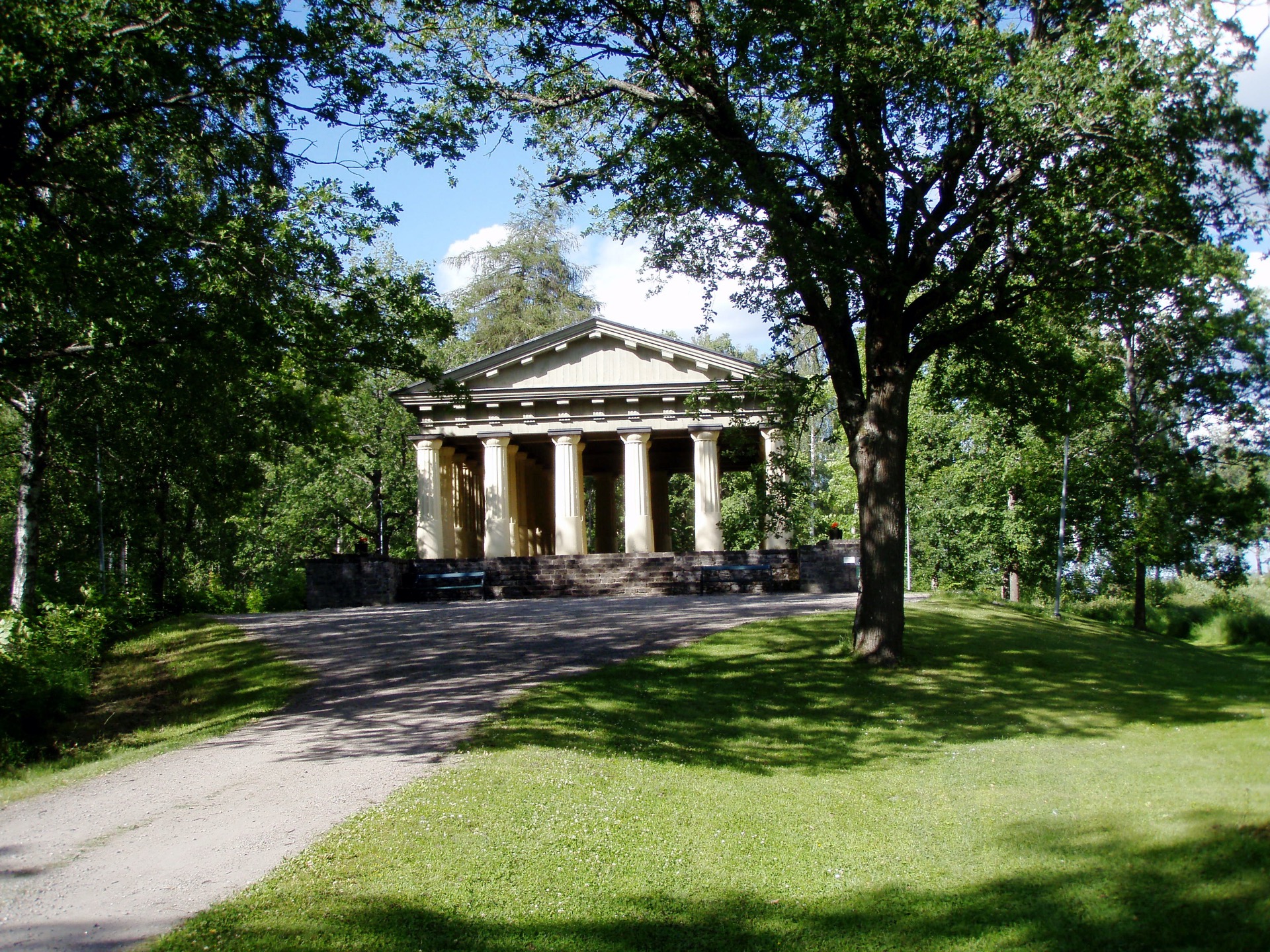Ο τότε ο ιδιοκτήτης της μεταλλουργικής βιομηχανίας, Adolf Ulric Grill, αποφάσισε να υλοποιήσει την ιδέα δημιουργίας ενός φυσικού πάρκου (αποκαλούμενου Αγγλικού τύπου) και μέσα σ' αυτό ν' αναγείρει ένα αρχαίο ελληνικό ναό. Στα νεανικά του χρόνια είχε ταξιδέψει εκτός Σκανδιναβίας και είχε επηρεαστεί από φιλοσοφικά ρεύματα και τις ιδέες του διαφωτισμού.