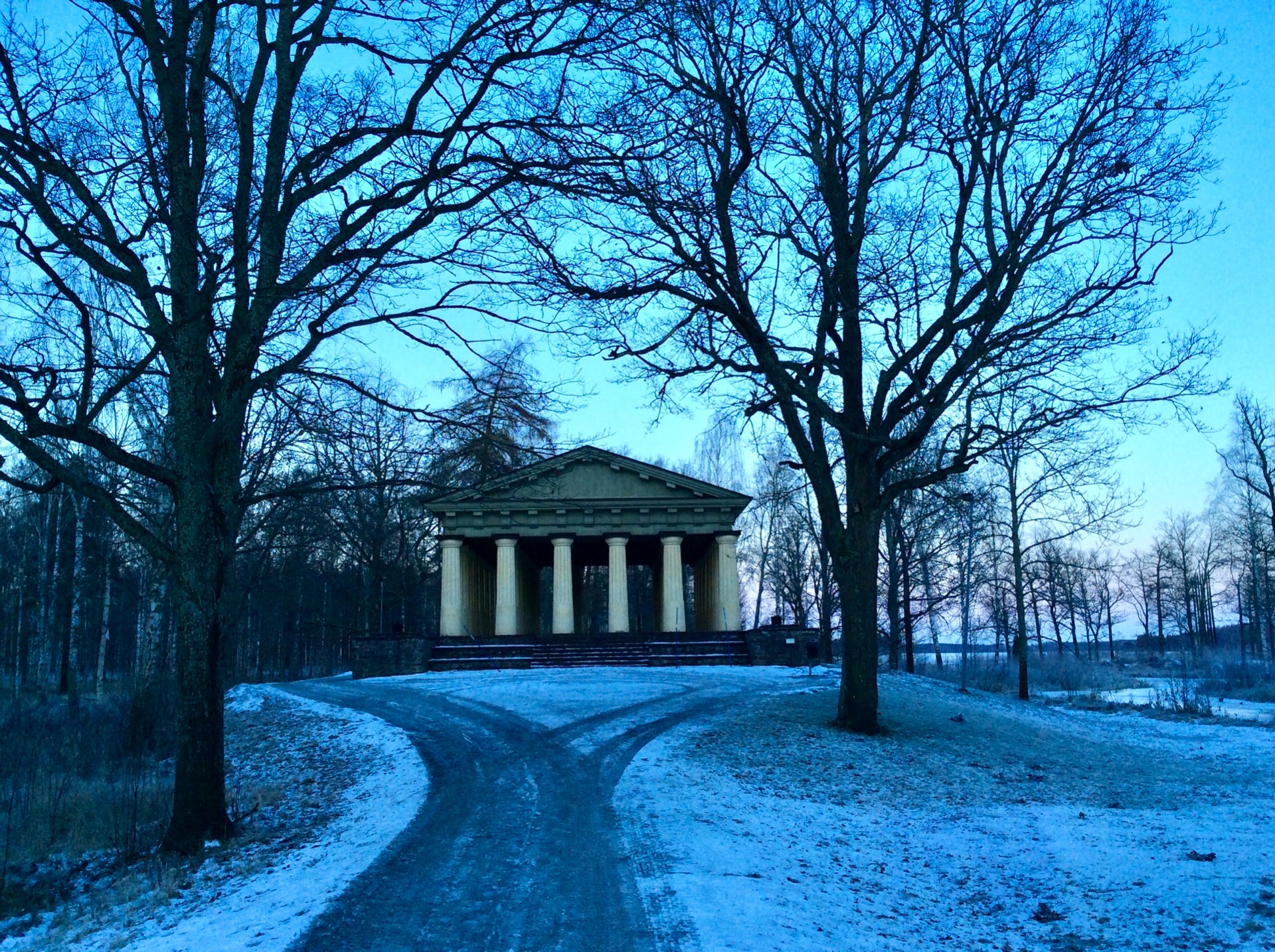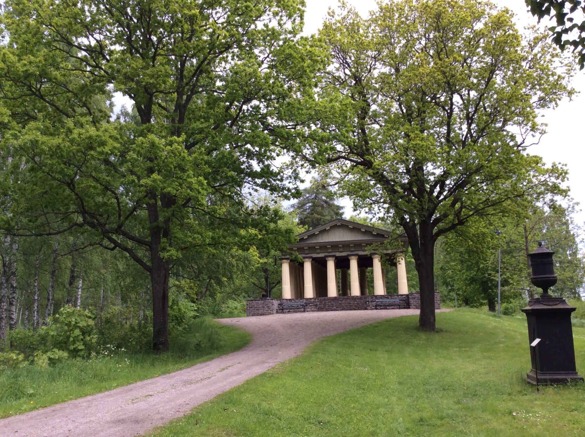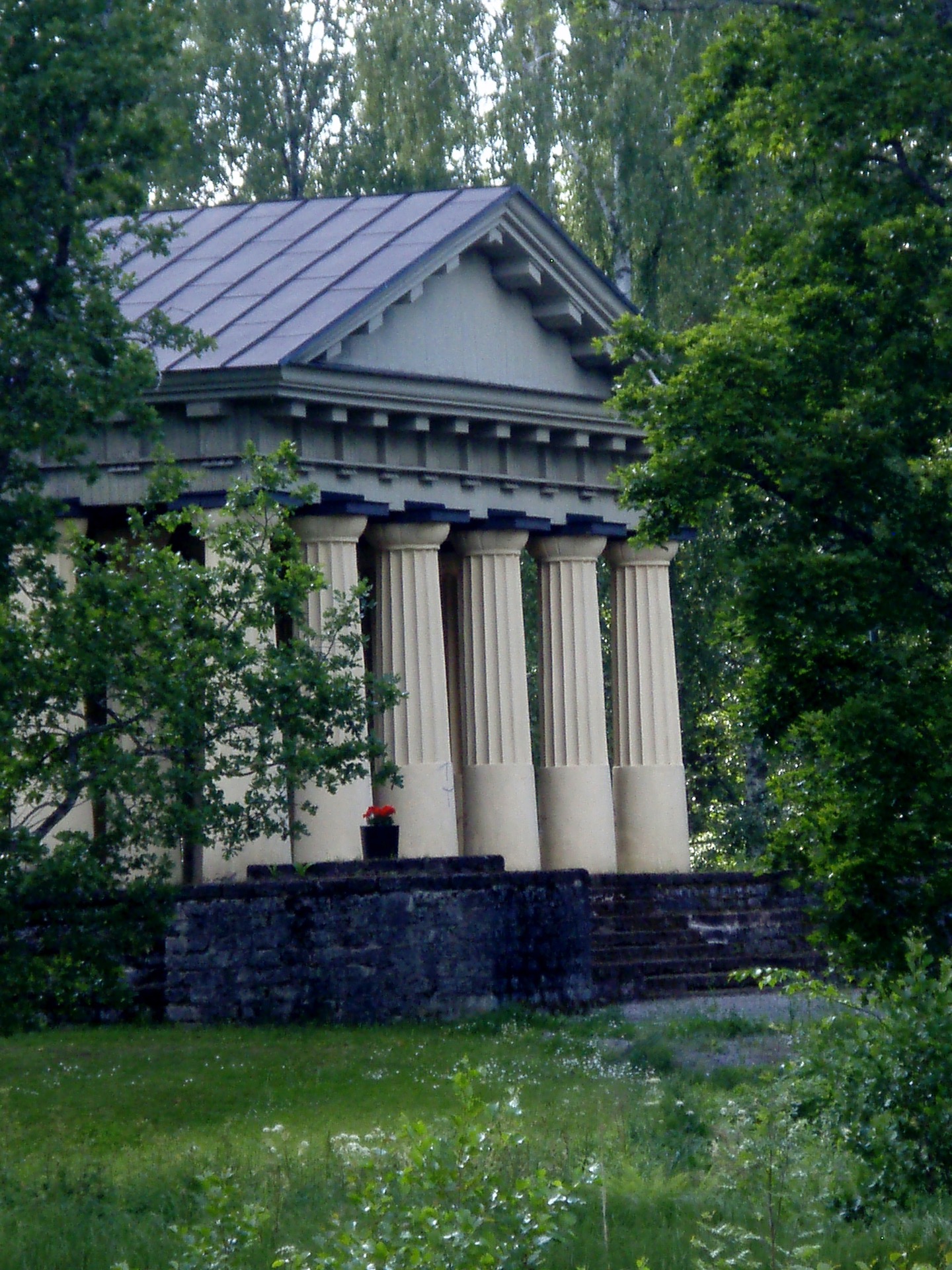 Ο τότε ο ιδιοκτήτης της μεταλλουργικής βιομηχανίας, Adolf Ulric Grill, αποφάσισε να υλοποιήσει την ιδέα δημιουργίας ενός φυσικού πάρκου (αποκαλούμενου Αγγλικού τύπου) και μέσα σ' αυτό ν' αναγείρει ένα αρχαίο ελληνικό ναό. Στα νεανικά του χρόνια είχε ταξιδέψει εκτός Σκανδιναβίας και είχε επηρεαστεί από φιλοσοφικά ρεύματα και τις ιδέες του διαφωτισμού.