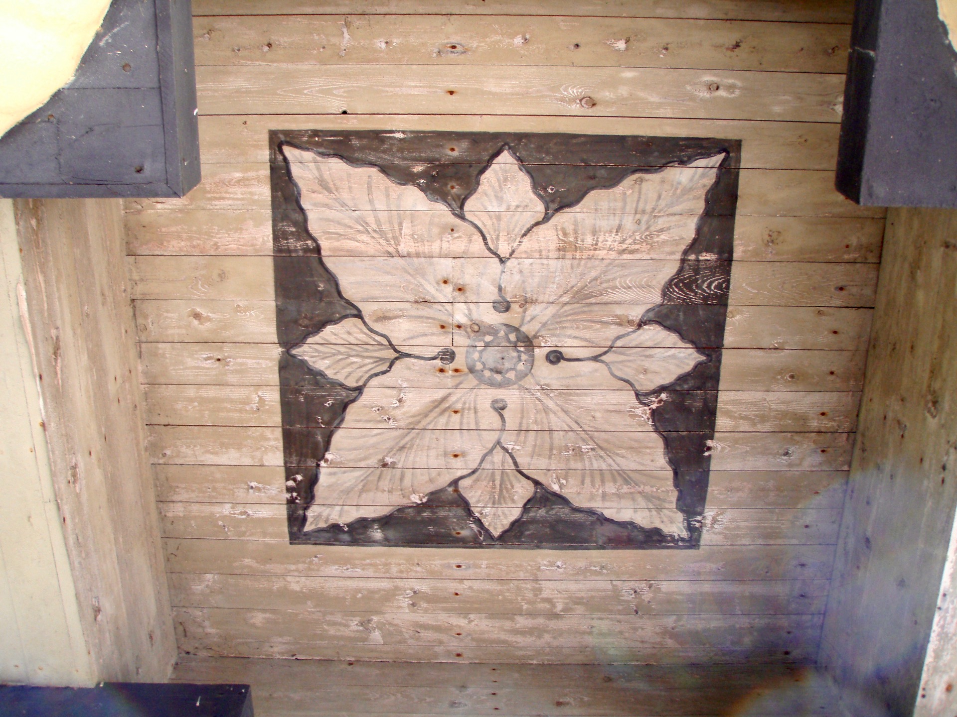- Η οροφή του ναού είναι θολωτή στο κύριο χώρο του -στο μέσο του ναού-κι επίπεδη προς τις πλευρές. Γενικά διακοσμείται από απλά σχέδια, τόσο γεωμετρικά όσο κι ένός συγκεκριμένου τύπου λουλουδιού.